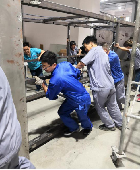 七八月份的驕陽似火,炙烤著大地。在航美車間的每個(gè)角落,有一群忙碌的人,正沉浸在機(jī)加、焊接、配孔、打磨、裝配、調(diào)試的交響樂中。大家正在如火如荼的加班加點(diǎn)、搶戰(zhàn)金華科技館的項(xiàng)目。面對(duì)時(shí)間緊、任務(wù)重的挑戰(zhàn),他們積極向上,毫無怨言,深知付出的勞動(dòng)成果被客戶認(rèn)可是多么光榮和自豪的事情。